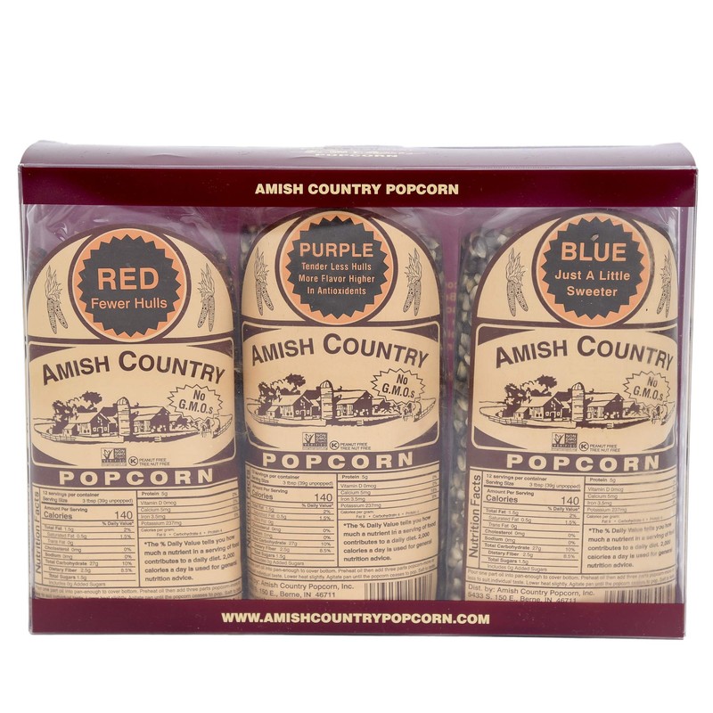 Amish Country Popcorn | 3 (1 Lb Variety Gift Set) - Red, Purple & Blue Kernels | Old Fashioned, Non-GMO and Gluten Free