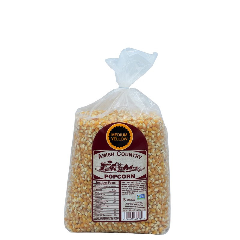 - 6 LB BAG OF MEDIUM YELLOW POPCORN KERNELS - This delicious, gourmet popcorn is made in the heart of Amish country.