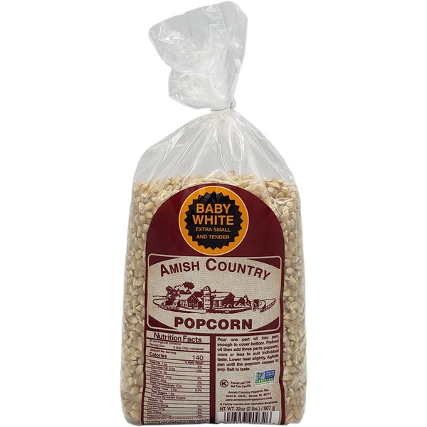 Amish Country Popcorn - Baby White Extra Small and Tender - GMO Free 2 lb Bag