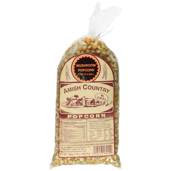 • 2, 1-pound bags of delicious mushroom Amish Country Popcorn