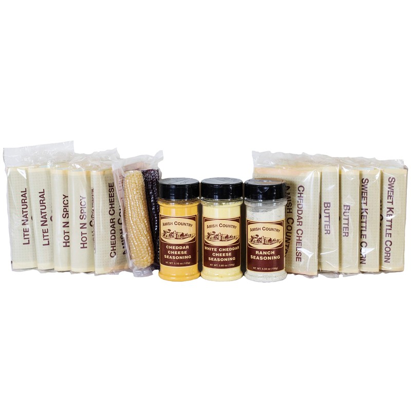 Amish Country Popcorn | Old Fashioned Microwave Popcorn | Non-GMO, Gluten Free, Microwaveable and Kosher (Microwave Sampler Gift Pack, 10 bags & 2 Cobs)