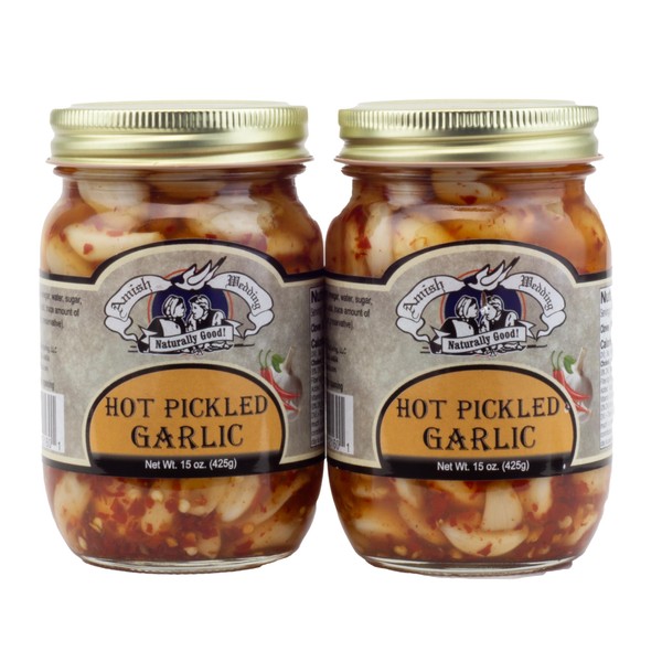 Amish Wedding All-Natural Hot Pickled Garlic 15 Ounces (2 Jars)