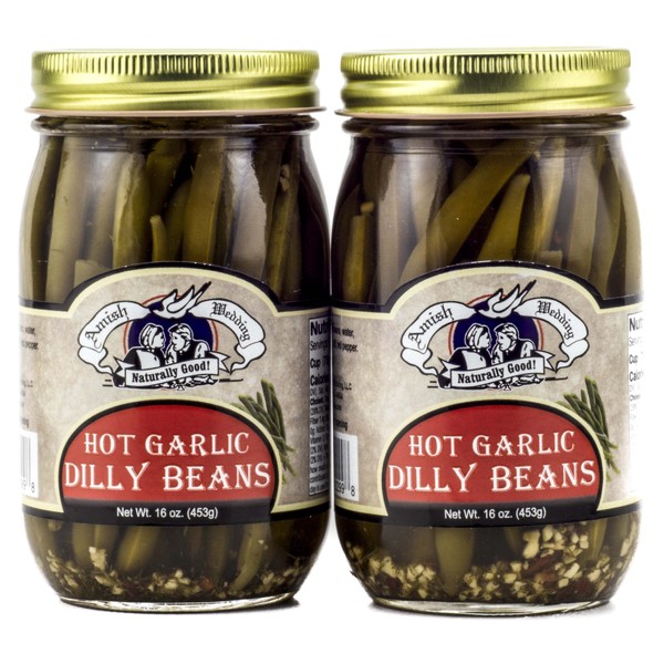 Amish Wedding Hot Garlic Dilly Beans 16oz (Pack of 2)