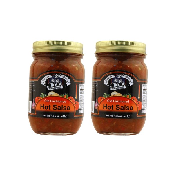 Amish Wedding Kettle Cooked Salsa, Thick and Chunky Pack of 2 14.5 ounce Jars, Hot Heat