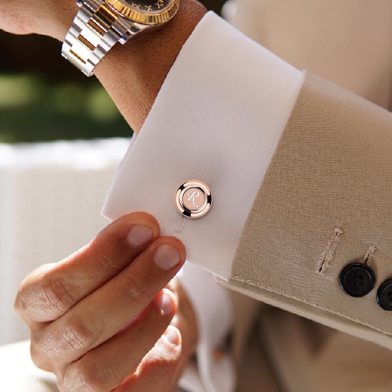 - 【PERSONALIZED DESIGN】Customized cufflinks engraved with initials make you look stunning. Cufflinks Size: 0.63in (16mm), easy to match your shirts or other formal, business attire.