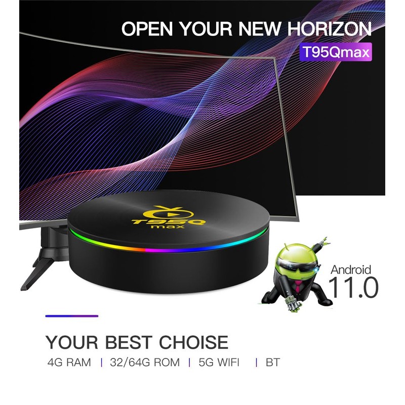 - Amlogic S905X4 Android 11.0 TV Box 4GB RAM 64GB ROM T95Q MAX TV Box S905X3 64-bit Quad Core with Dual Wi-Fi 2.4G/5.0G BT 4.0/ 3D Ultra HD 8K/ H.265/ 100M LAN/USB 3.0 Android TV Box
