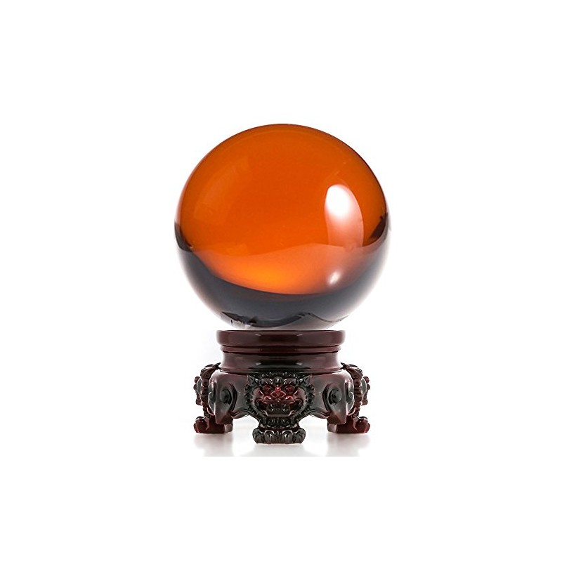 Amlong Crystal 3 inch (80mm) Amber Crystal Ball with Redwood Lion Resin Stand and Gift Box for Decorative Ball, Lensball Photography, Gazing Divination or Feng Shui, and Fortune Telling Ball