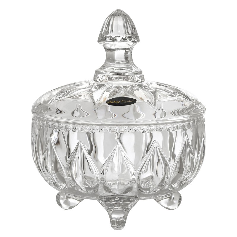 Amlong Crystal Lead-Free Clear Crystal Candy Jar with Lid, 4.8 inch Diameter, 6 inch High