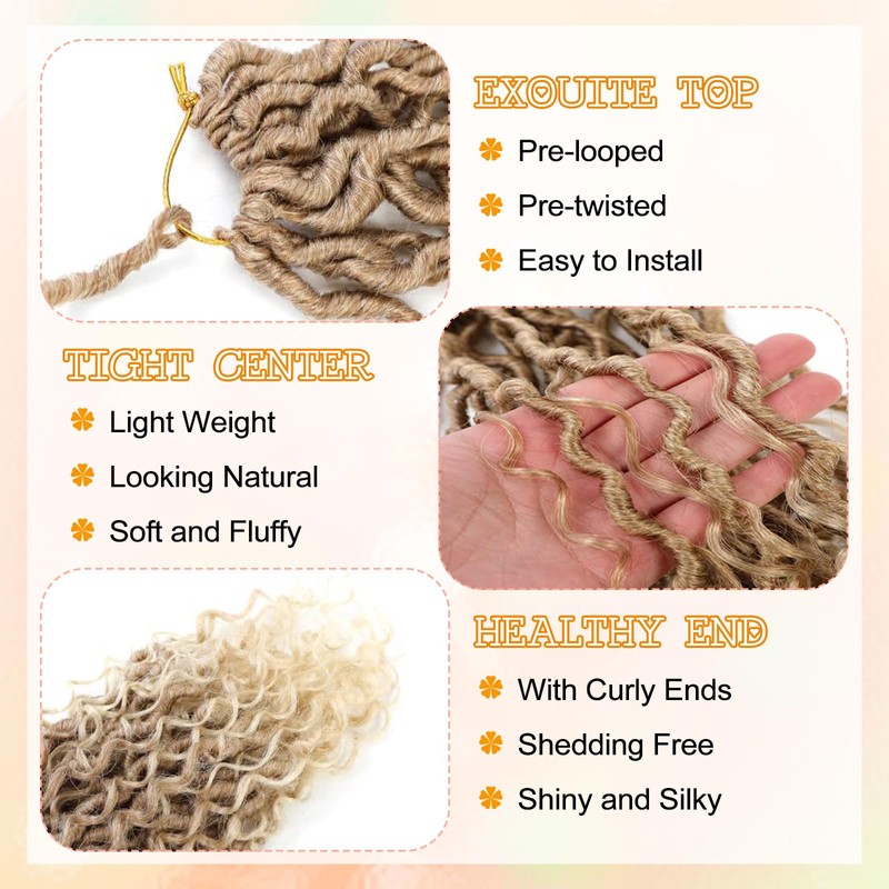 - Hair Style: Goddess locs crochet hair, Faux locs crochet hair with curly end, soft boho locs crochet hair, Bohemian river goddess faux locs crochet hair.