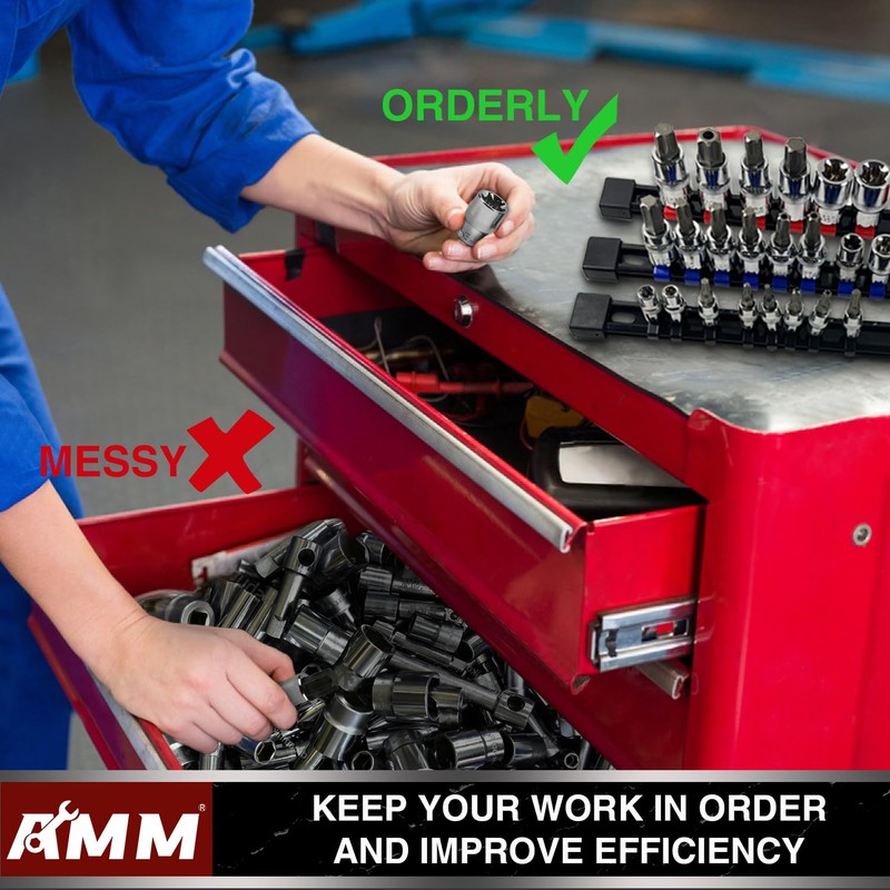 - 【EASY TO IDENTIFY】AMM brand This socket holder is available in blue, black and red, so you can quickly and easily find SAE and metric sockets.