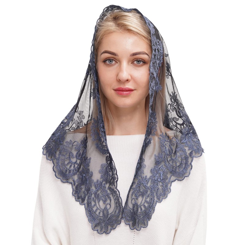 Ammmscaf Velos triangulares de encaje Mantilla para cubrir la cabeza, velos de iglesia católica, Azul