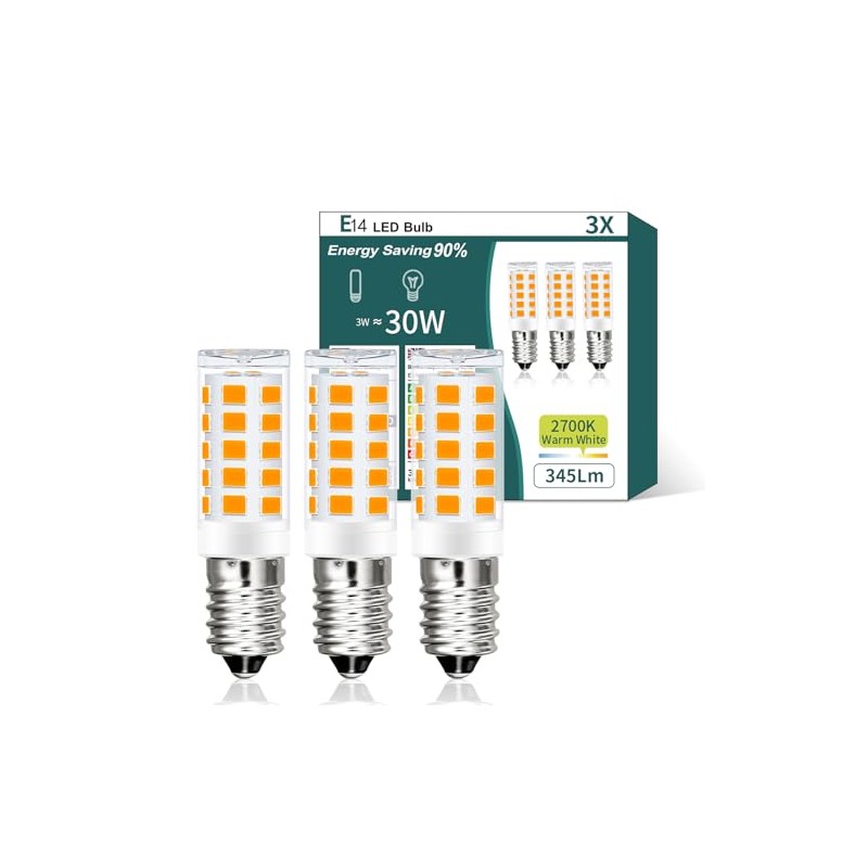 AmmToo E14 LED Warmweiss Birne, 2700K LED Lampe, Glhbirne E14 3W ersetzt 30W Halogenlampen, Kein Flackern Khlschranklampe Nicht Dimmbar, Led Mais Birne fr Dunstabzugshaube Wandlampen (3 Stck Warmwei?)