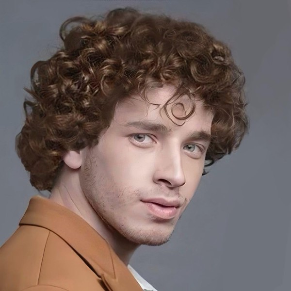 Amnenl Brown Curly Short Afro Wigs for Men California Cosplay Daily Costume Hair Wig for Male Guys