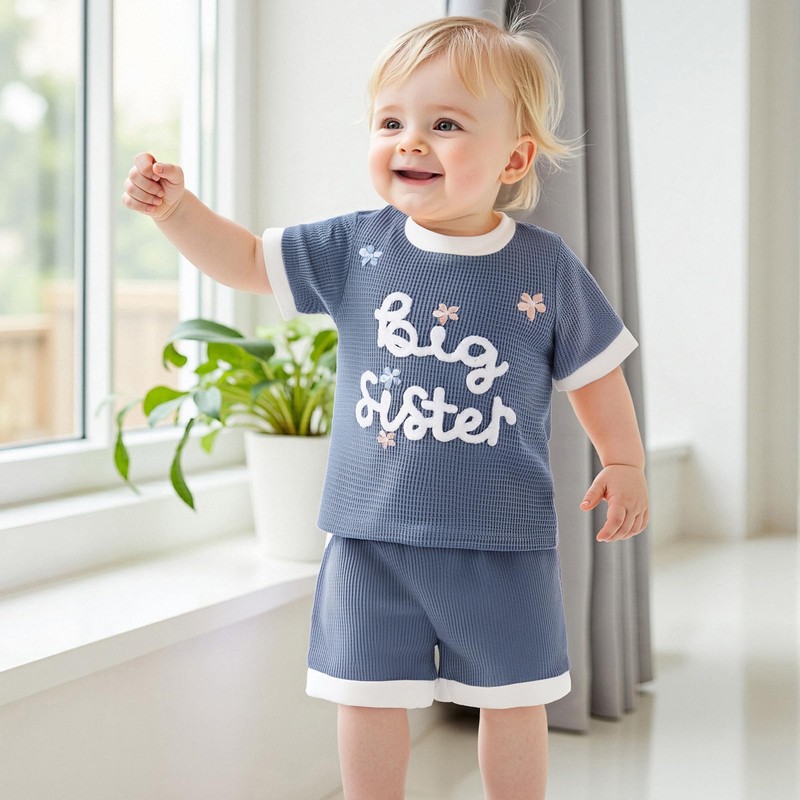 - Features: Flower embroidery, big sister and little sister, cute big sis and lil sis short sleeve waffle tshirts shorts, cute baby girl clothes, cute toddler girl clothes
