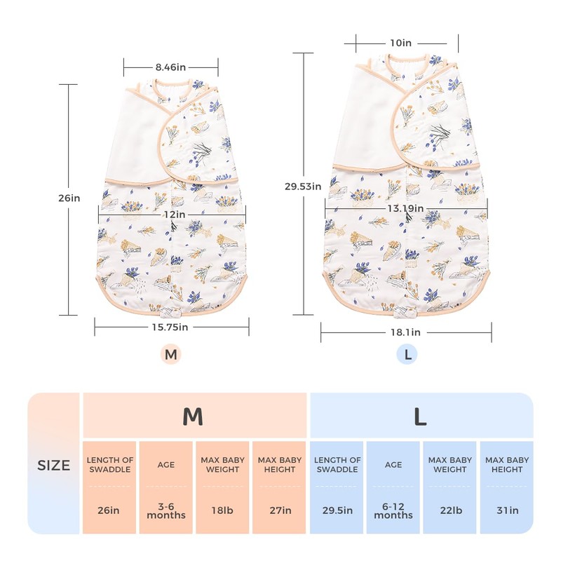 amo nenes Sleepsack Baby Swaddle, 3-Way Adjustable Wearable Blanket 6-12 Months, Swaddles Newborn Infant Sleep Sack Soft Transition Swaddling Rayon Cotton Sleeping Bag, Flower