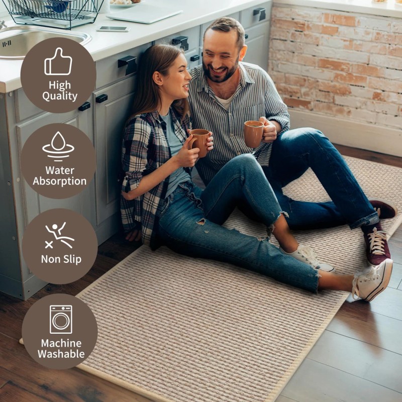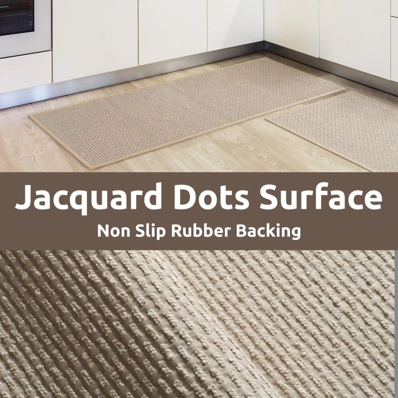 - NON-SLIP RUBBER BACKING: Rubber backed kitchen mats have a strong grip. They will alaways stay in place, reducing the likelihood of the rug shifting or bunching up. Skid resistant kitchen rugs provide stability and reduce the chances of slipping on the smooth surface, enhancing safety during kitchen activities.