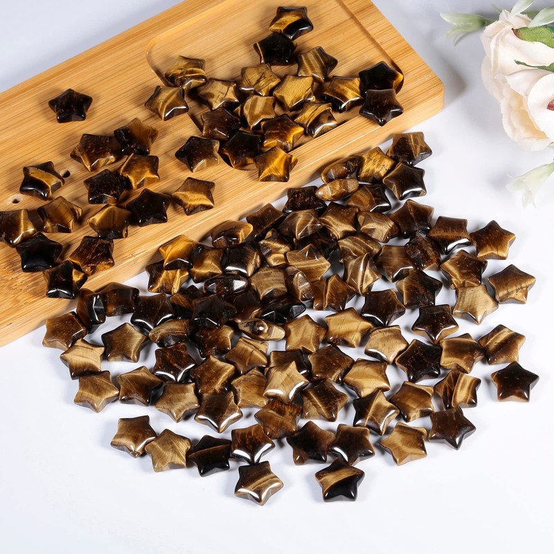 Amogeeli 10pcs Mini Polished Tiger's Eye Crystal Star Shaped Palm Pocket Stone Decoration for Home Desk Table Meditation Reiki