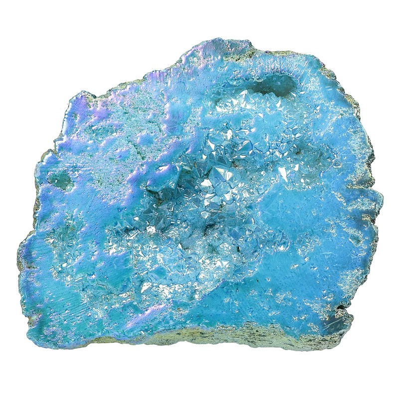 - Titanium Coated Natural Rock Crystal: All of our crystal geodes are natural. To achieve the vibrant color, stones have been processed the titanium coated. Each one is unique and special. There may have a slight natural variation of size, shape, and cluster. The listing is for reference.