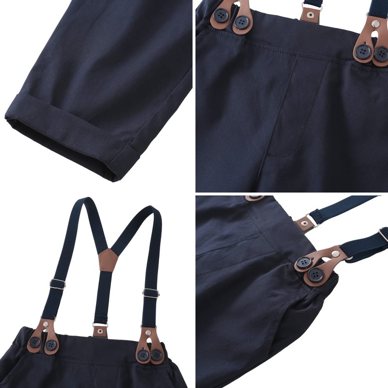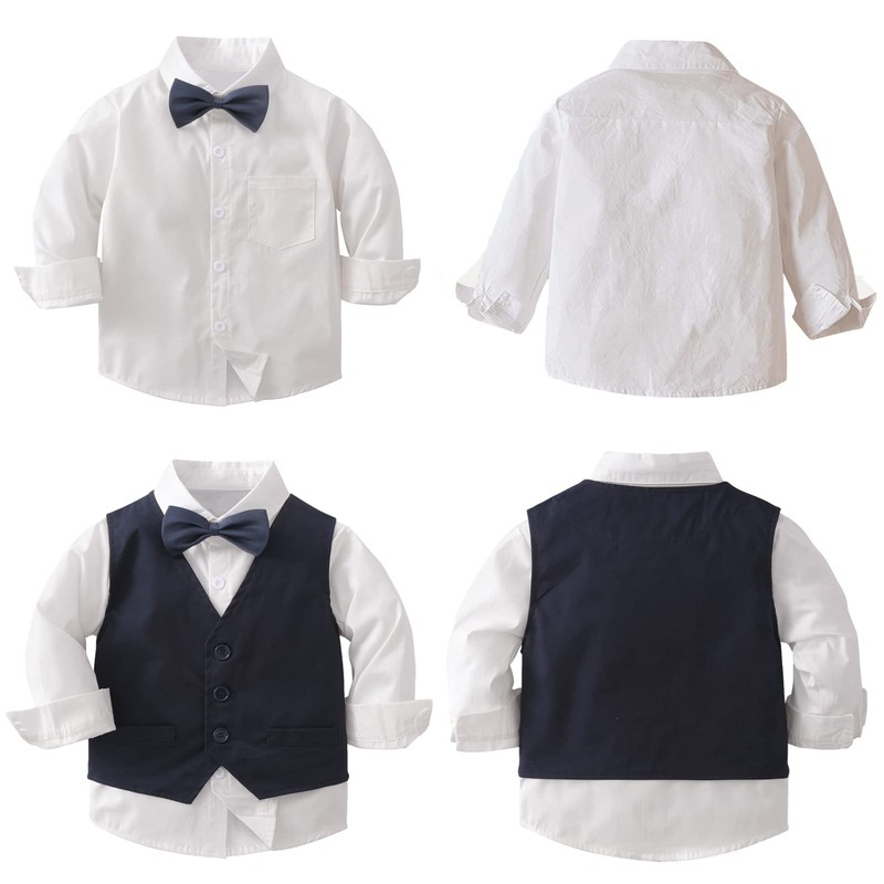 - Design: Classic white shirt with bow tie looks so handsome. Styled with removable suspender will let your baby more cute. Exquisite vest can add a sense of formal. All the parts are detachable that you can make different look for your baby.