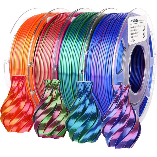 AMOLEN Silk PLA 3D Printer Filament Bundle, Shiny Dual Color Filament 1.75mm Pack, Multi Color Change 3D Printing Filament for Most FDM 3D Printer, 4 Spools 200g Each