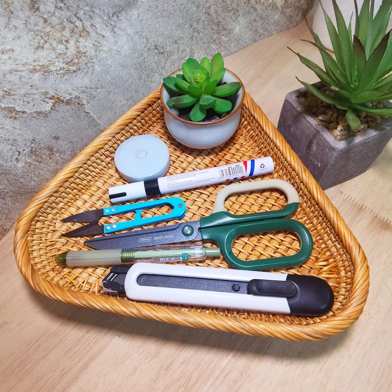 - Décor Rattan Basket Tray Maintenance: The triangle basket being with a special shape, is very easy to clean, you just need wipe clean with damp cloth and dry it. Warm tips: Size and color difference: Each set may have a little bit difference in size and color because of material.