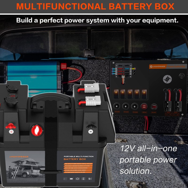 AMOMD Power 12-24V Multifunctional Battery Control Box Heavy Duty Electrical System Power Control or Distribution Box for Camping Trailer Boat Car RV Solar (No Battery)