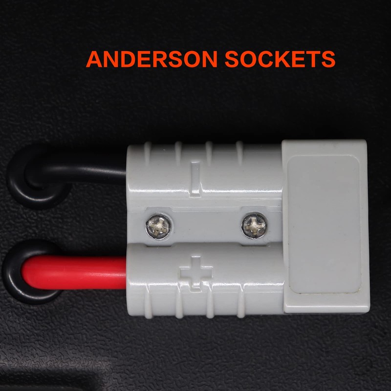- Multi Function:configuration includes 2x 50 A anderson input/output sockets,qc3.0 ports & pd18w type-c,1x12 v female sockets,1x 150 A battery switch,1xfastening strap,terminal +/-,heavy duty copper wire, led voltmeter display,15 A circuit breaker