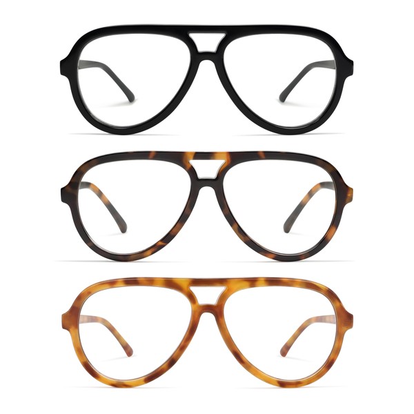 AMOMOMA 3 Pack Retro Aviator Reading Glasses for Women Men,Classic Large Oversized Reader Blue Light Computer Frame AM6111 C1+C2+C9 1.50