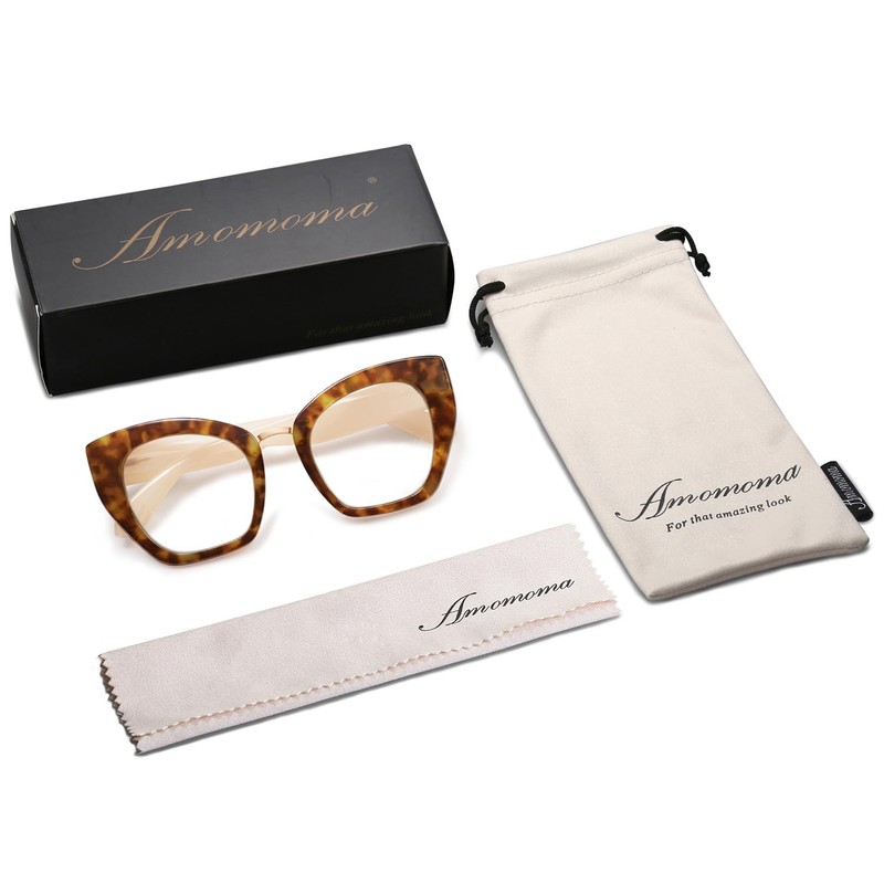 AMOMOMA Oversized Cat Eye Reading Glasses for Women, Blue Light Big Frame Spring Hinge Readers AM6087C4 0.0