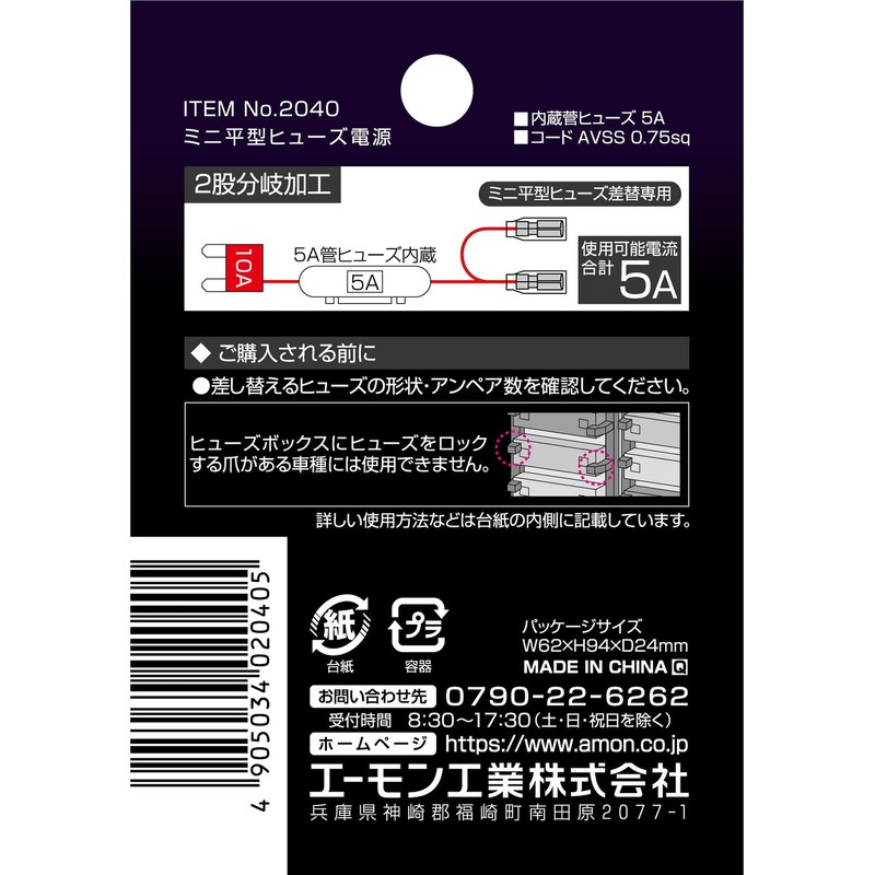 amon AODEA mini flat type fuse power supply for 10A fuse replacement 2040