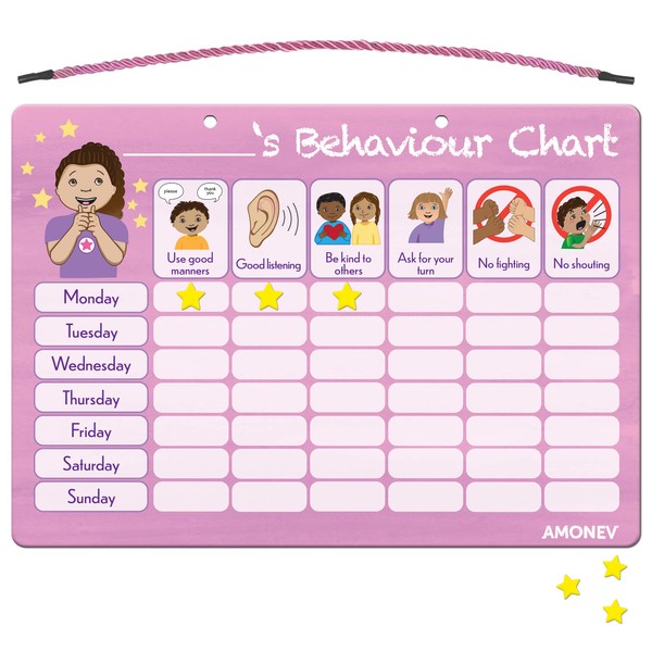 Amonev Children's Magnetic Behaviour Reward Chart. Magnetic Sticker Chart. Reusable Wall Chart for Promoting Good Behaviour (Pink)…