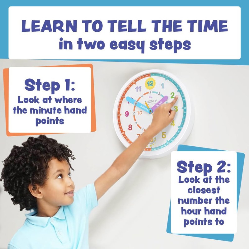 - Amonev clocks help teach children to tell the time, contributing to a child’s learning and development.