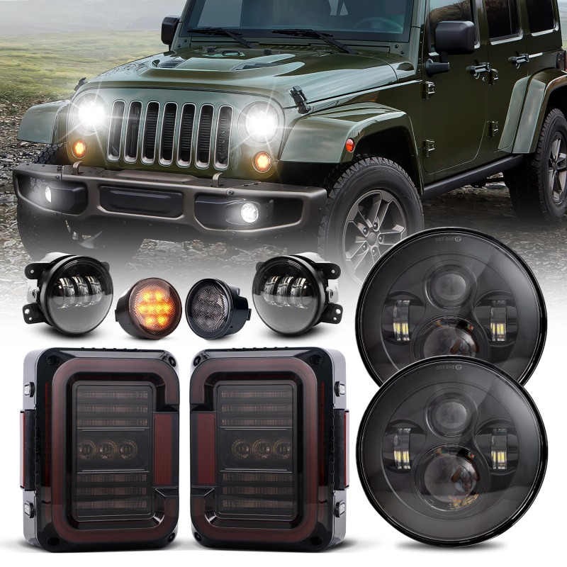 Amonly 7" LED Headlights Tail Lamps Turn Signal Fog Lamps Kit For Jeep JK JKU 2007-2018