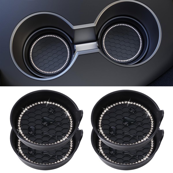 Amooca Car Cup Coaster Universal Non-Slip Cup Holders Bling Crystal Rhinestone Car Interior Accessories 4 Pack Black