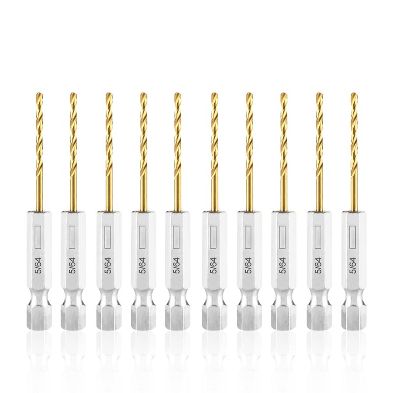 amoolo 5/64 Hex Shank Drill Bits, 10Pcs Titanium HSS Twist Impact Drill Bit Set for Metal, Steel, Wood, Plastic, Quick Change Design