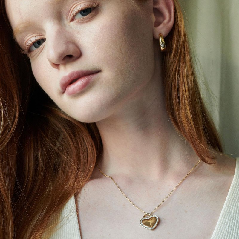 - Details: the engraved heart necklace "Amour" by Amoonic is made of 925 silver yellow gold plated with 39 zirconia stones. The chain is a 45 cm anchor chain of approx. 1.5mm thickness The necklace in heart shape can be used e.g. as a name necklace with desired name or friendship necklace with initials or a date.