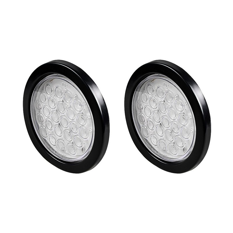 AMOPACORP For RV Trailer Truck SUV Sedan Combo 2pcs 4" White Round 24 Diodes LED Trailer Tail Reverse Back-up Brake Stop Turn Signal Brake Marker Clearance Light