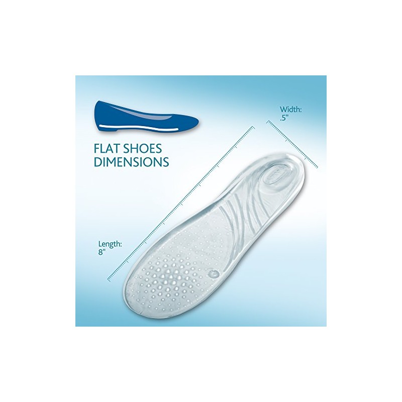 Get all day comfort for flat shoes with Amole Gel Active Flat Shoes Insoles, designed for narrow style flat shoes and boots to provide extra cushioning and shock absorption under the heels for lighter-feeling feet all day.