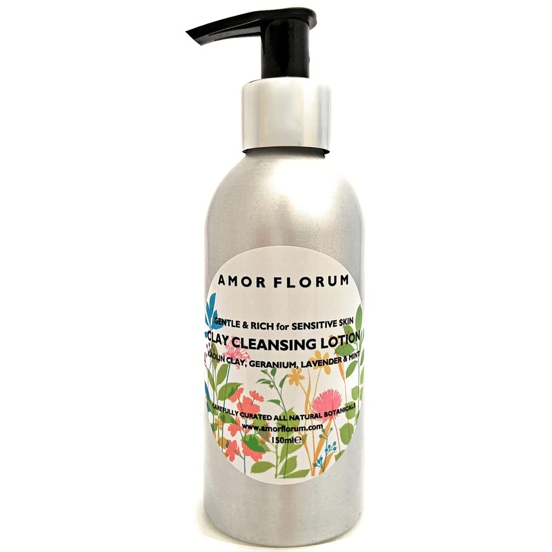 Amor Florum - Clay Cleansing Lotion - 99% Natural - Kaolin Clay, Lavender, Geranium, Mint. Gently Cleanse, Hydrate. pH 5.5, Sensitive Skin.150ml