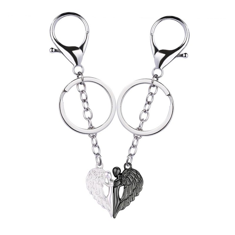 - ❤Pack of 2pcs Black White Angel Keychain Set- one for her,one for him