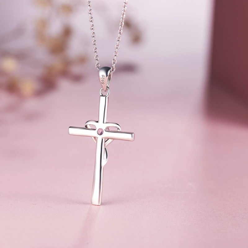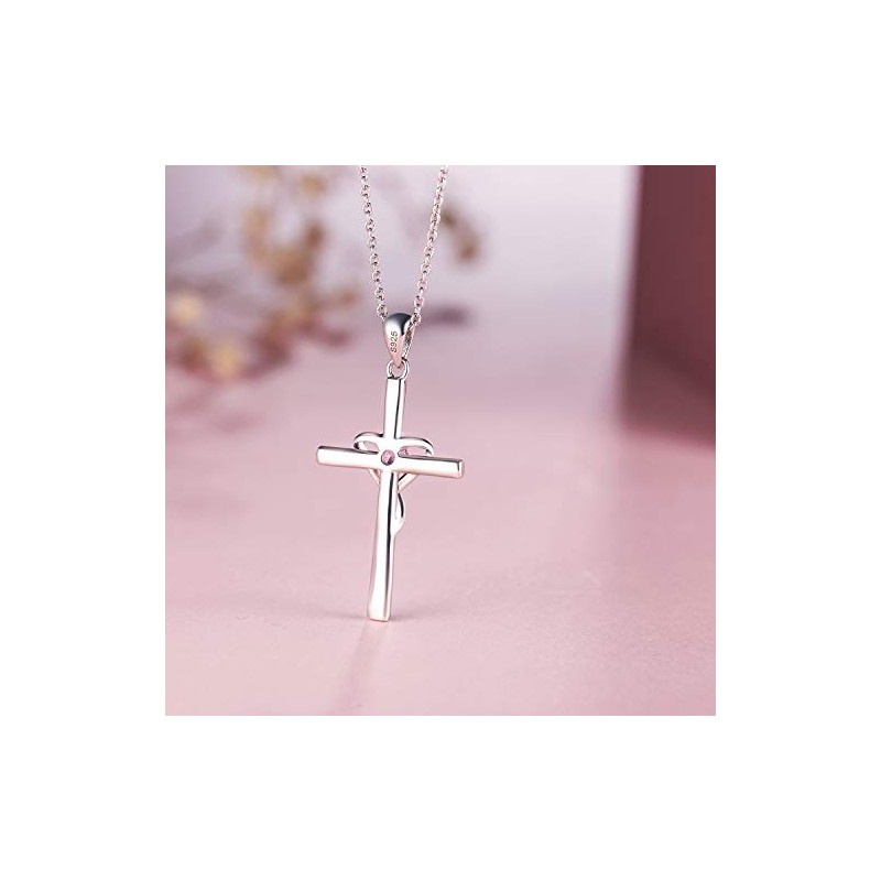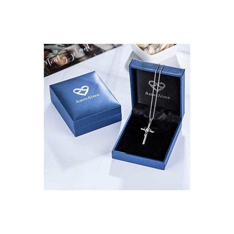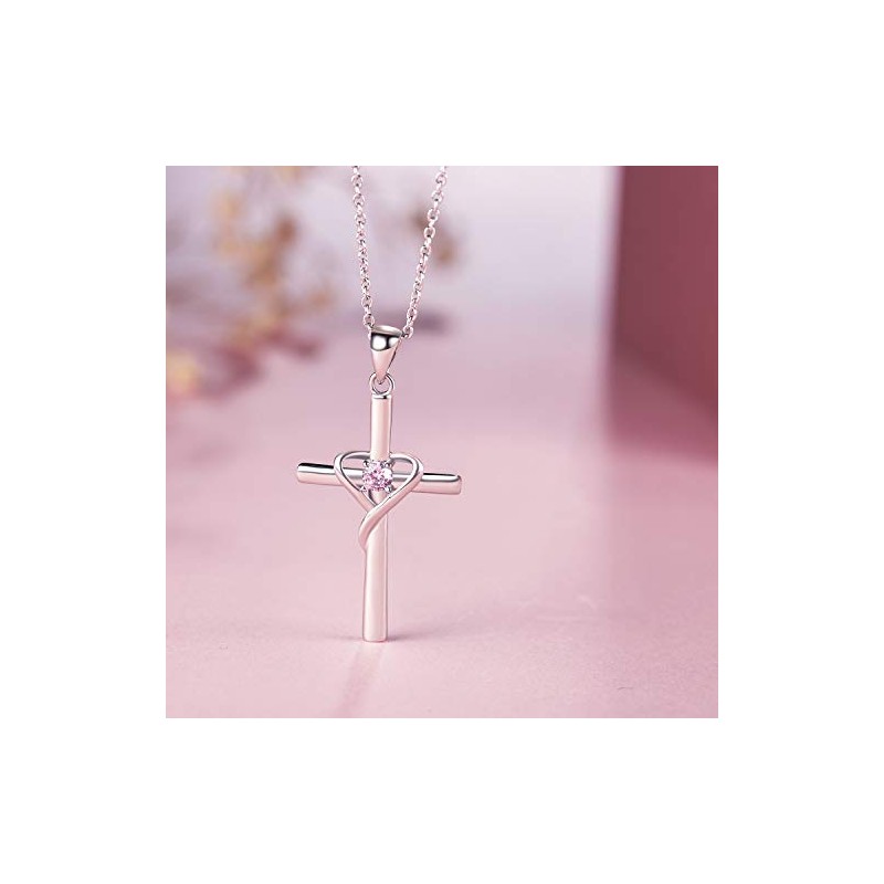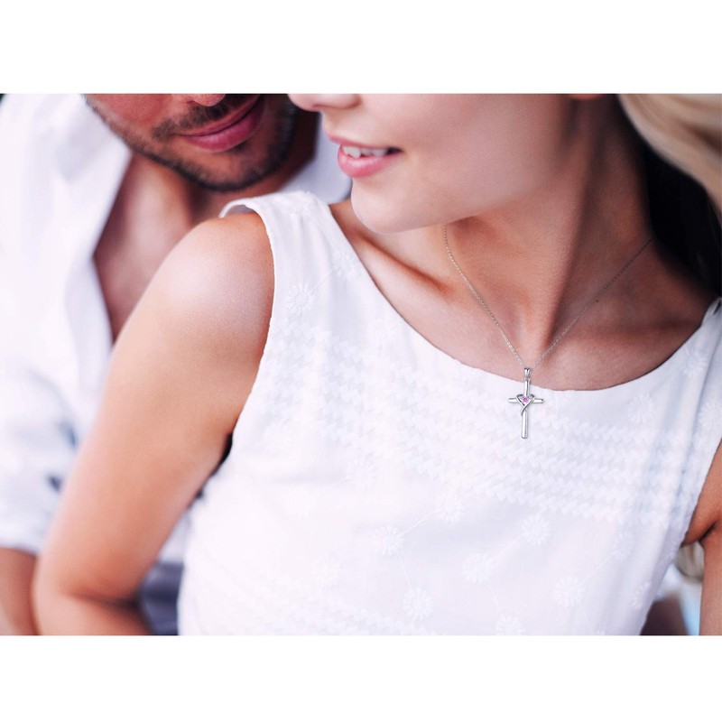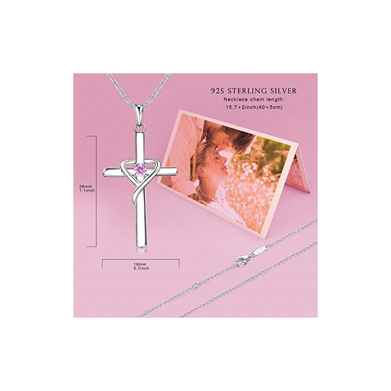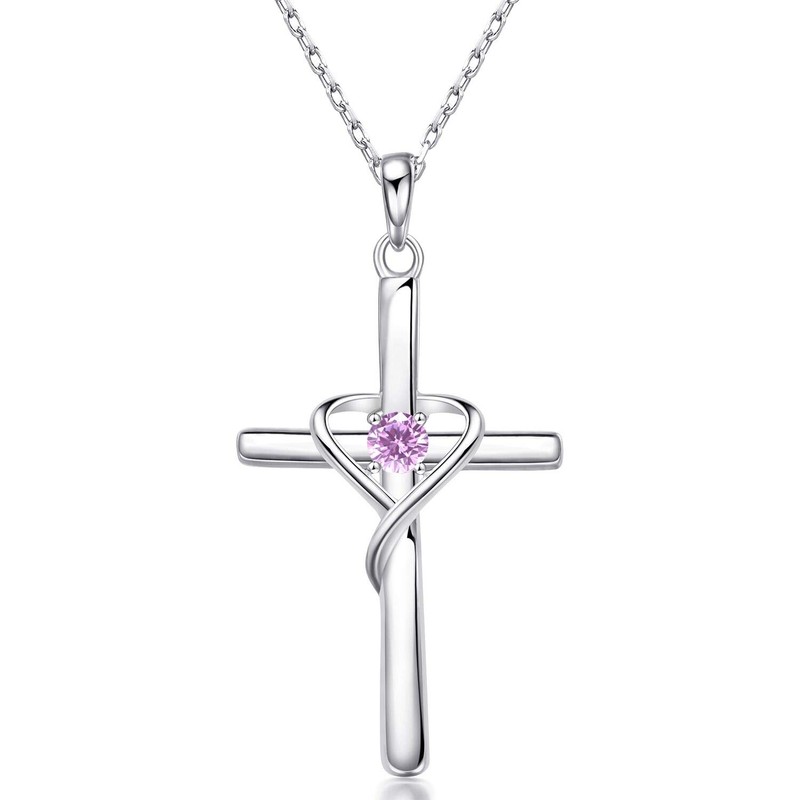 AmorAime 925 Sterling Silver Cross Necklace for Women Men 5A CZ Birthstone Necklaces Gifts for Valentine's Day, Birthday or Anniversary