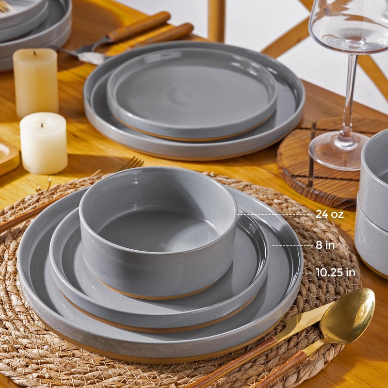- LEAD FREE EAT SAFTY :Our plates and bowls is made of druable material and features an all-natural glaze that is lead-free, cadmium-free. The set is fired at a high temperature of 2340℉ for 13 hours to ensure its durability and safety. With this dinnerware set, you'll never have to worry about any health problems.