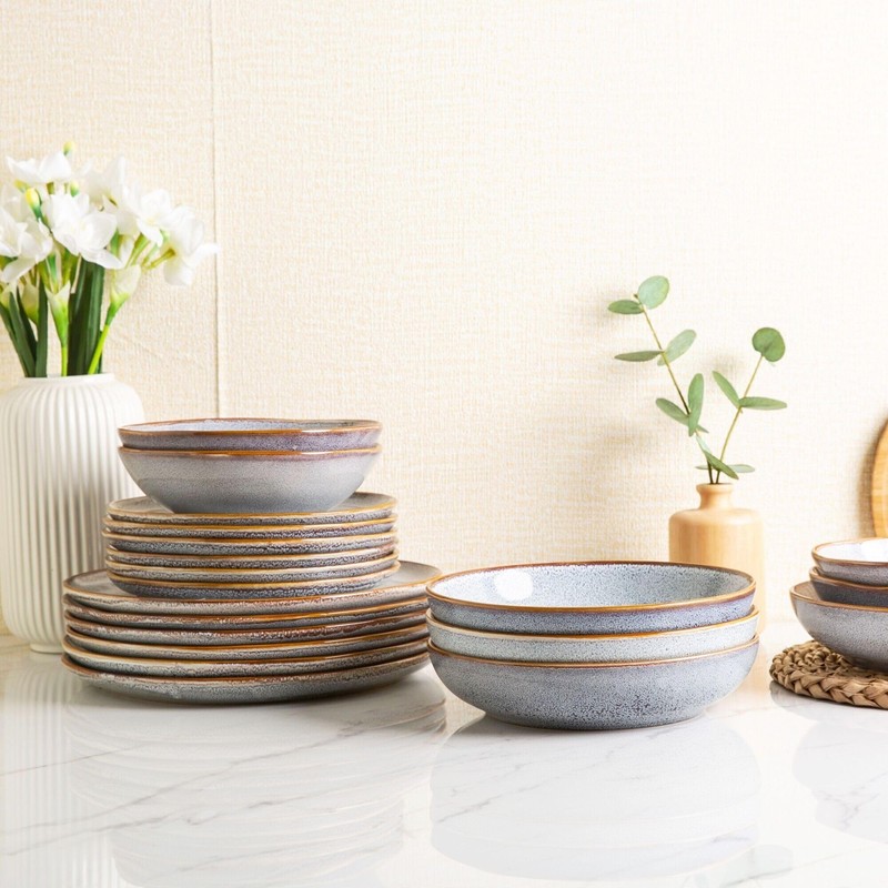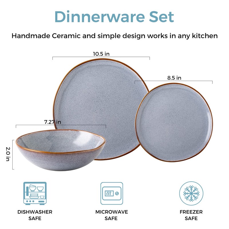 - EVERY PLATE IS UNIQUE: This dinerware set are fired with two different glazes, so the surface develops a beautiful color and makes your food look even more delicious.Since our glaze is all-natural, the surface of plates would change color on different lighting. The color may be a tad different from what you see in the images,but very item is betiful.Our glaze is also extra strong to prevent scratches from your knives and forks.