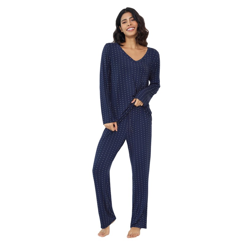 Amorbella Cooling Pyjamas for Women Bamboo Pajamas Jersey Knit Moisture Wicking Pjs(Navy Polka Dot, Medium)