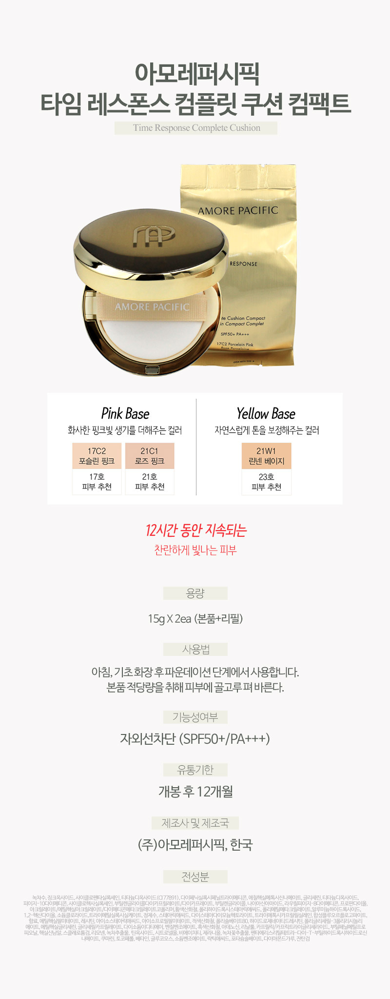 Amorepacific 아모레퍼시픽 타임 레스폰스 컴플릿 쿠션 컴팩트 15gX2 (본품+리필) G Amorepacific Time Response Complete Cushion Compact 15gX2 (Full Size + Refill) G