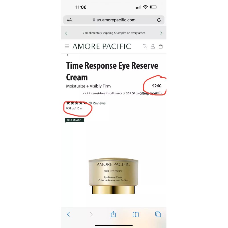 AMOREPACIFIC AMORE PACIFIC Time Response EYE Reserve Cream 1ml X 30pcs(30ml)- US Seller