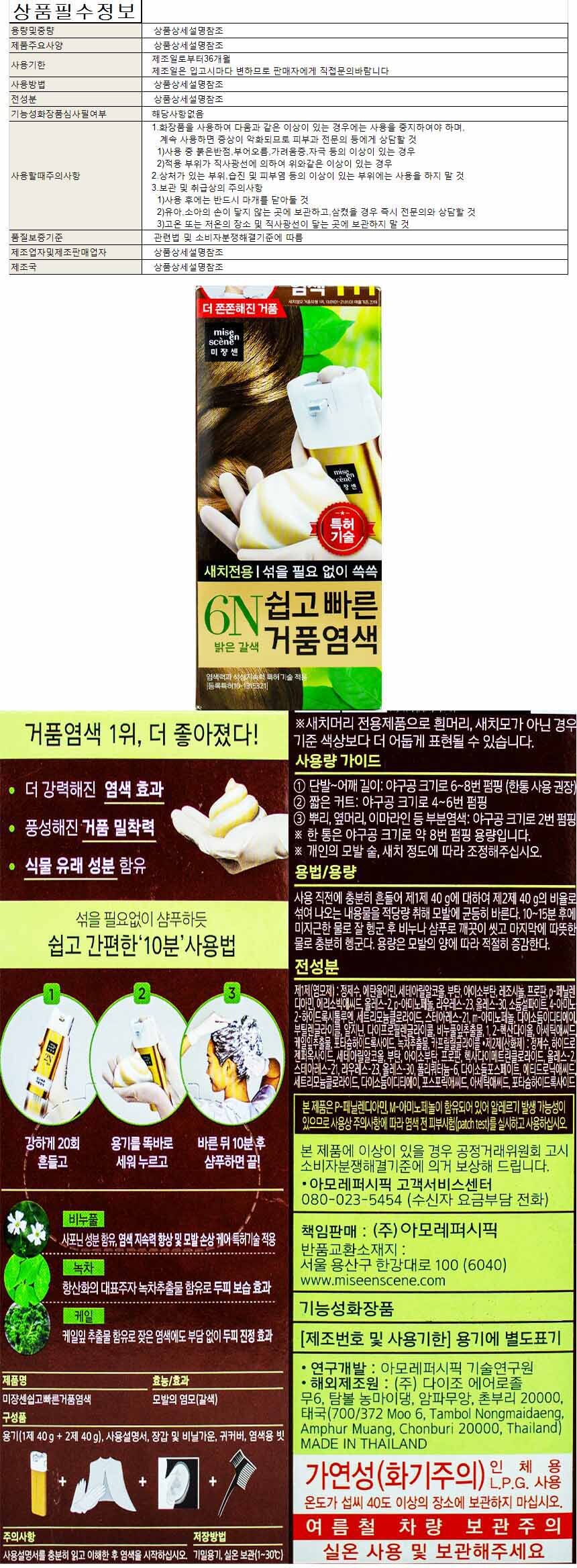 Amorepacific Mise en scène All New Easy and Fast Foam Hair Dye 6N (Light Brown)