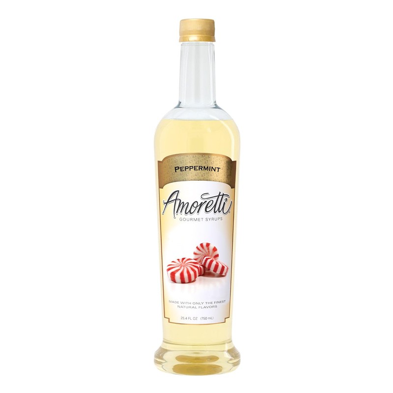 Amoretti - Peppermint Gourmet Syrup, 94 Servings Per Bottle (750 ml), for Flavoring Coffees, Cocktails, and other Beverages, Gluten Free, GMO/GEO Free, Preservative Free