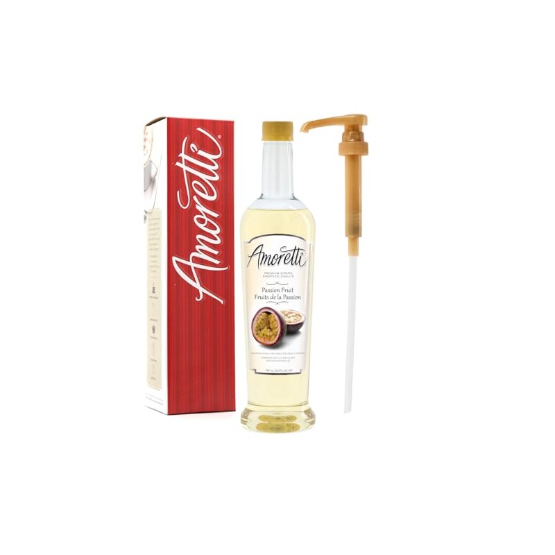 Amoretti - Premium Passion Fruit Syrup, 94 Servings Per Bottle (750 ml), with Pump for Flavoring Coffees, Cocktails, and other Beverages, Gluten Free, GMO/GEO Free, Preservative Free