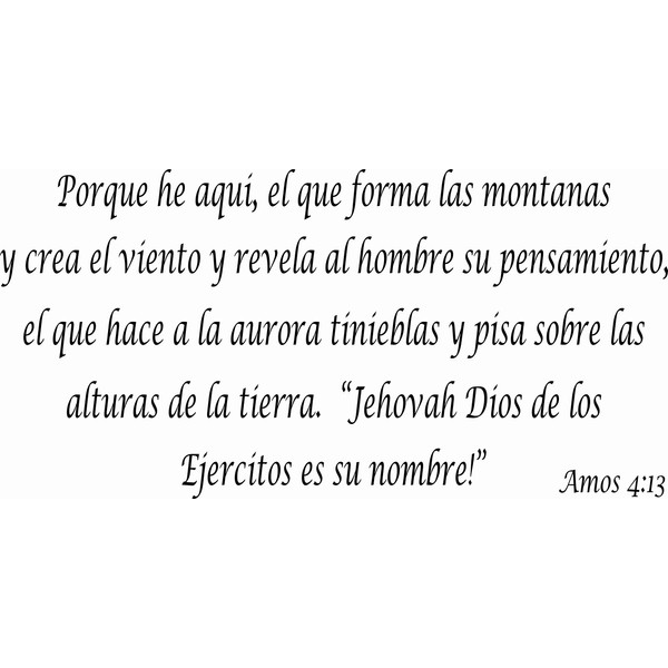 Amos 4:13 Spanish Beautiful Bible Verse Wall Decal by Scripture Wall Art Includes Our Exclusive"Goof Proof Guarantee"